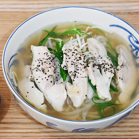 スープは牛骨を7時間以上じっくり煮出して澄みを整え、 脂を丁寧に引いて後味よく仕上げたベトナム定番のフォー ガー当店では3種類のフォーをご用意しております。