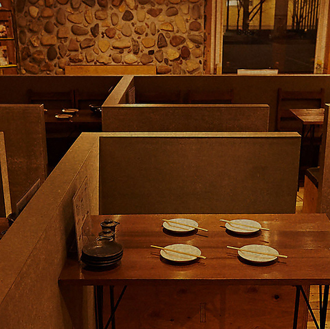グループでのご夕食や女子会に最適な、プライベート感のあるテーブル席をご用意。各席に仕切りを設けているため、ご家族やご友人と水入らずで会話を楽しみながら、自家製料理を心ゆくまでご堪能いただけます。モダンながらも肩肘張らずに過ごせる開放的な空間で、思い出に残るお食事の時間をお過ごしください。