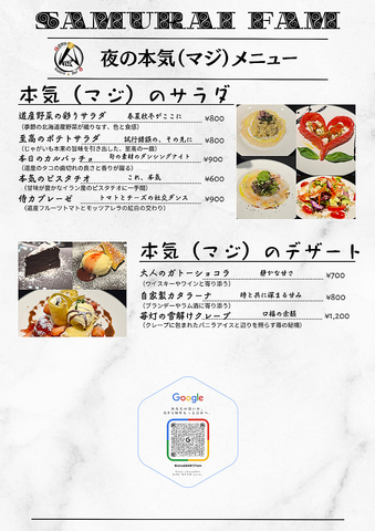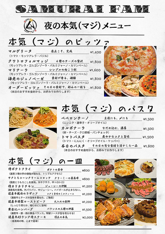 全て手作りのこだわりを生かしたメニューとなります。日替わりで旬の食材のメニューも随時追加していますので、黒板メニューもお楽しみ下さい。