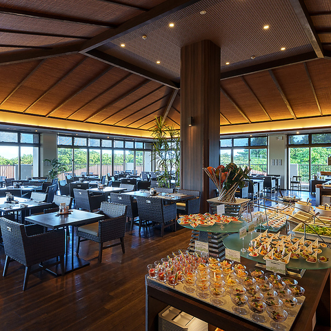 天井が高く、開放感に満ちたホテルレストランならではの優雅な空間。隣席を気にせず過ごせるゆったりとした配席は、大切な記念日や接待にふさわしい落ち着きを演出します。市街地の喧騒を離れ、洗練された雰囲気の中で味わう極上の石垣牛と美食ビュッフェ。宿泊以外の方も利用可能なこの隠れ家で、至福のひとときを。