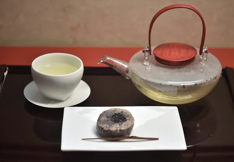 本店以外ではほとんど出会えない、老舗の味。合わせるのは、熊本・大和町の下田茶園の釜炒り茶。400℃の高温で生み出される香ばしい香りと、無農薬・無肥料のやさしい旨み。ヨーロッパでは“Gold Tea”として愛される特別な一杯です。