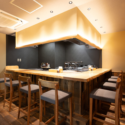 職人の手さばきを目の前で愉しめるカウンター席は、お一人様での贅沢なひとときやデートにも最適で、鉄板で焼き上がる音や香りが食欲をそそります♪落ち着いた照明が灯る和モダンな空間は、日常の喧騒を忘れさせてくれる上質な雰囲気です。こだわりの一皿が仕上がる様子を眺めながら、ゆったりとお酒をお愉しみください☆