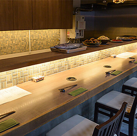 横丁の活気がありながらも、当店は比較的落ち着いた雰囲気のため、賑やかすぎずゆっくりと会話を楽しみたい方にもおすすめです◎1階にはおひとり様はもちろん、大切な方とのデートにも最適なカウンター席をご用意しております!
