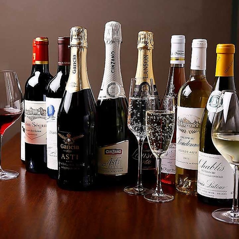 店内のワインセラーで理想的な温度に保たれたワインは、鉄板の上で豪快に焼き上げる肉料理と最高の相性を誇ります。お肉の脂の甘みを引き締める重厚な赤から、魚介の鉄板焼に寄り添う爽やかな白、そしてお祝いの席を華麗に演出する極上のシャンパンまで、シーンに合わせたセレクトが可能です◎
