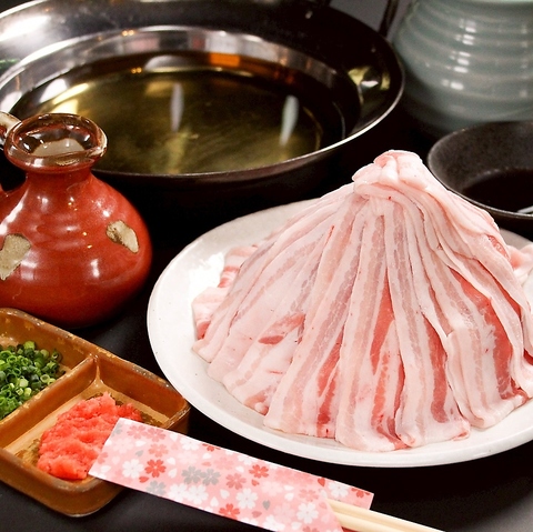 皿いっぱいにそびえ立つ、鮮度抜群の豚バラ肉。職人が一枚一枚丁寧にスライスした肉は、熱々の出汁にさっと通すだけで極上の柔らかさに。溢れ出す良質な脂の甘みを、特製のタレとこだわりの薬味で味わう、お腹も心も満たされる圧巻のしゃぶしゃぶです。