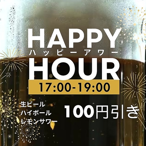 当店では、17:00~18:30の間にご注文いただくと、レモンサワーとハイボールが驚きの100円(税込)引きになる【ハッピーアワー】クーポンをご用意しています。この特別な時間を利用することで、リーズナブルに美味しいドリンクを楽しむことができるチャンス!仕事帰りや友人との集まりにぴったり☆お得なこの時間を逃さず、ぜひご利用ください◎