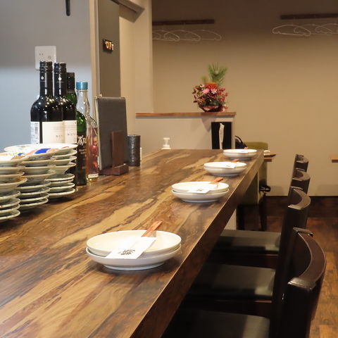 お洒落で清潔感のある店内は、デートや記念日など特別な日のディナーに最適です。お一人様でも気兼ねなく過ごせるカウンター席のほか、レイアウト変更が可能なテーブル席も完備しています。補助椅子を使用すれば10名様以上の団体利用も可能なので、会社帰りの宴会や友人同士のお集まりにもぜひご利用ください♪
