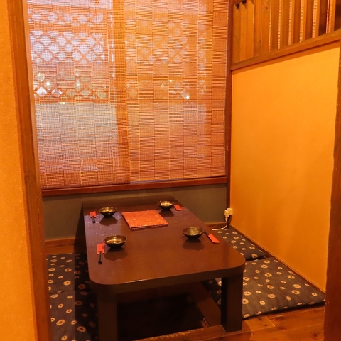 【大人の隠れ家・和モダンで落ち着いた個室空間】赤い壁が印象的な店内は、暖色系の照明が灯る落ち着いた和の空間。掘りごたつ式の個室も完備しており、周りを気にせずゆったりと会話を楽しめます。デートや少人数での飲み会など、大切な時間を演出します。