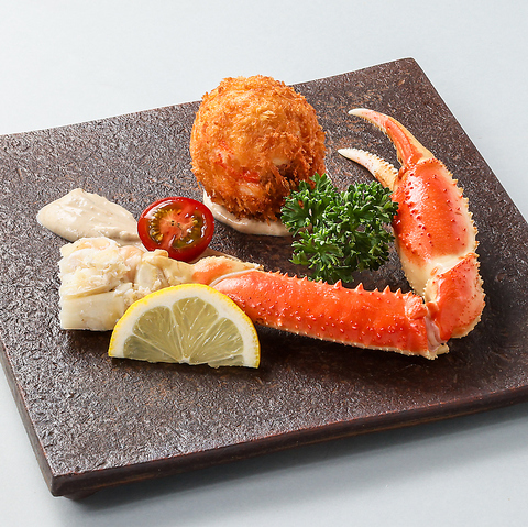 海老、ズワイガニ、イカ、キス、旬の野菜を盛り合わせた天ぷらはお酒との相性も抜群!ちょこっと盛りもあります!ちょこっと天ぷら盛り合わせ980円(税込)/贅沢天ぷら盛り合わせ1480円(税込)