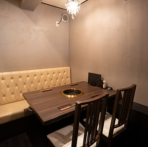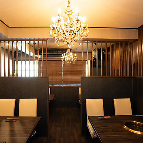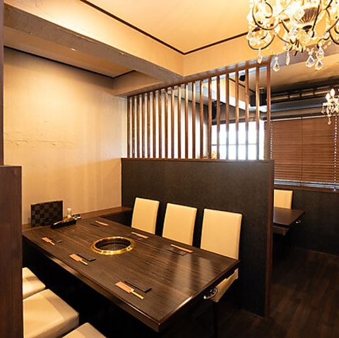 【プライベート感◎全席仕切りのテーブル席】ご家族やご友人との食事には、周りが気にならない仕切り付きのテーブル席をご用意。お子様連れのファミリーも気兼ねなくおくつろぎいただけます。高級店の堅苦しさはなく、安くて旨い大衆焼肉の雰囲気の中で、心ゆくまで極上のお肉をお楽しみいただけます♪