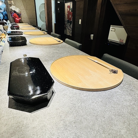 デート利用にはカウンター席がぴったりです。二人の距離を近く感じながら、シェフの活気ある調理を目の前で楽しめる特別な空間です。落ち着いた雰囲気の中で、素敵なひとときをお過ごしください。