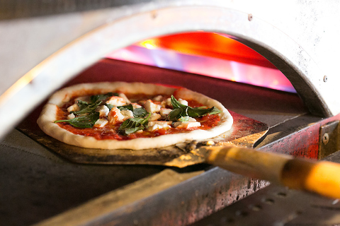 400~500℃で一気に焼く事で焼き上げる、熱効率の良い石窯が美味しいピザの秘密です。