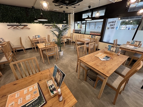 【温かみのある店内】店内総席数38席で広々としております。照明や家具も温かみのある雰囲気のものをそろえております。ホッとしたひと時をお過ごしください。大人数での貸切やご利用も承っております。