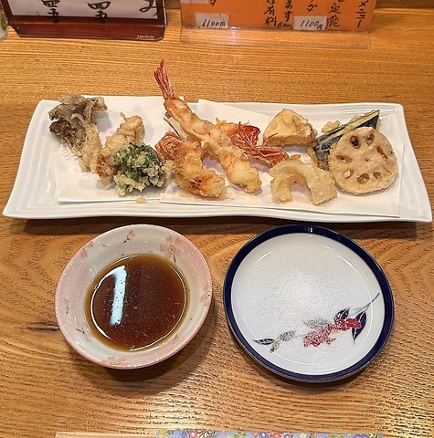 見た目はしっかり揚げ物なのに、驚くほどさっぱりと味わえる自慢の天ぷらセット。油切れの良さが絶妙で、食後も軽やかに楽しめる一品です。薄めの衣はサクッと心地よく、中はほっくり甘い素材の旨みが広がります。天つゆの香りと合わさることで後味も爽やか。気付けばお皿が空になってしまう満足度の高い天ぷらをぜひ。