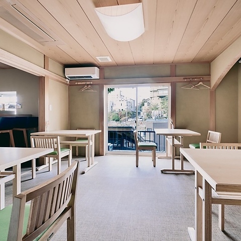 大きな窓から明るい光が差し込む店内は、木の質感を大切にした温かみのある空間。開放感がありながらも落ち着いた雰囲気で、外の景色を眺めながらゆったりとお食事を楽しめます。清潔感あふれる和モダンなインテリアに囲まれて、日常の忙しさを忘れて心からリラックスできる時間をお過ごしください。ご家族やご友人とのお集まりにも最適です◎