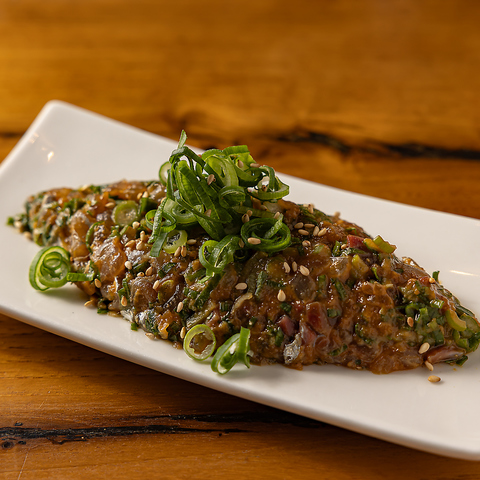 鮮度にこだわったアジを、丁寧に叩き上げた王道の酒場料理。まろやかな旨みと香りが口いっぱいに広がり、後引く味わいがもう一杯を誘います。軽くつまみたい時にも、しっかり飲みたい夜にも寄り添う万能な酒肴です。
