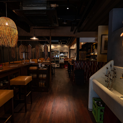 通路にもゆとりがあり、食器や調度品が丁寧に整えられた清潔感のある店内。照明は落ち着いたトーンで、食事の時間をより豊かに演出します。友人との語らいにも、静かに味わう一人飲みにも寄り添う、居心地のよさが魅力です。