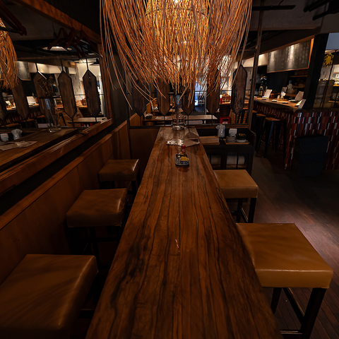 最大5名まで座れる長テーブルは、少人数の集まりや料理を多く注文する会にも向いた使いやすい席。立食時は10名まで対応でき、用途に合わせた柔軟な利用が可能です。