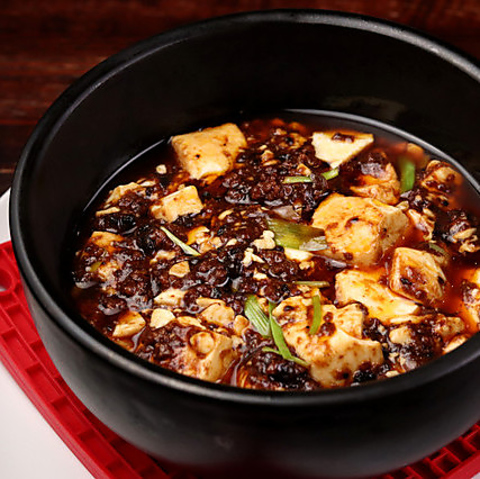 当店一番人気の「本格四川麻婆豆腐」は1200円(税込)。本場のスパイスを効かせた奥深い味わいが特徴で、辛さは「パンダ(マイルド)」から「ドラゴン以上(激辛)」まで4段階からお好みで調整可能です。石焼スタイルや炒飯、おこげに乗せたアレンジメニューも充実しており、お酒のおつまみや〆の一品としても大変ご好評をいただいております◎