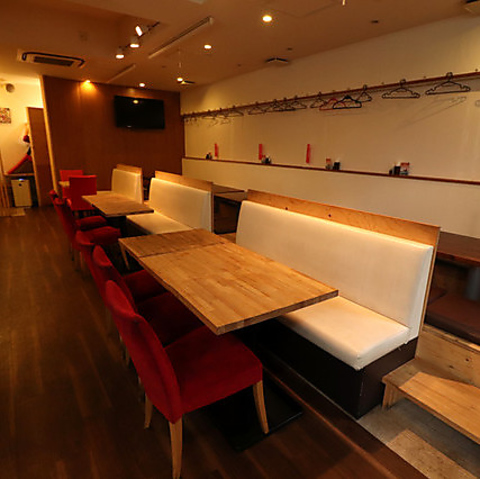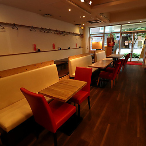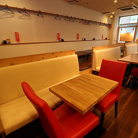 明るく清潔感のある店内には、少人数でのランチやディナーに便利なテーブル席をご用意しております。片側がソファー席になっており、ゆったりとお食事を楽しめるのが魅力です♪ご友人同士の会食や女子会、デートなど、プライベートなシーンでもお気軽にご利用いただける空間です。