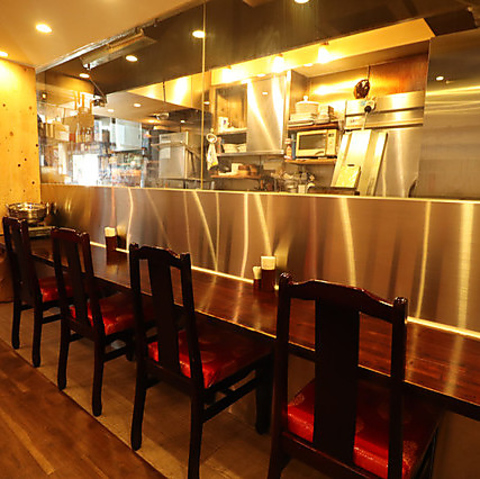 お一人様大歓迎!ライブ感も楽しめる特等席をご用意 調理の活気がダイレクトに伝わるカウンター席は、お仕事帰りのサク飲みやクイックランチに最適です。お一人様でも気兼ねなく、本格四川の味をじっくりと堪能していただける落ち着いた雰囲気のお席となっております。