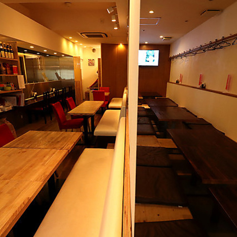 明るく清潔感のある店内には、少人数のグループに最適なテーブル席や、お一人様でも気軽に利用できるカウンター席がございます。木目調の落ち着いたインテリアが心地よい空間を演出し、ランチからディナーまで幅広いシーンでご利用いただけます。デートや女子会、お仕事帰りのサク飲みにもぜひどうぞ◎