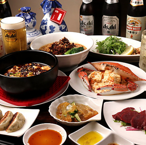 ゆったり3時間飲み放題が楽しめるコースもご用意しています。6600円(税込)コースでは自慢の麻婆豆腐や炒め物、点心まで全8品を堪能でき、8800円(税込)コースなら北京ダックや蟹の炒め物など豪華な逸品が登場します。美味しい料理とお酒を囲んで、大切な仲間と特別なひとときをお過ごしください♪