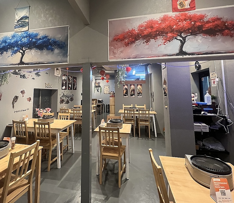少人数向けの落ち着いたテーブル席やカウンター席を配置。親密な会話をしながら、焼肉を満喫できる雰囲気が魅力◎空間は区切りを活かしプライベート感を演出し、居心地よく長居したくなる特別な場所を提供!