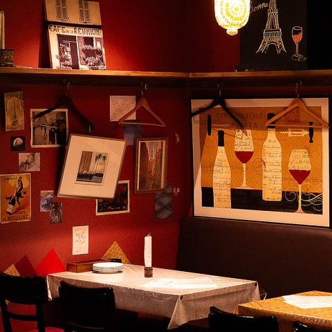 パリの路地裏食堂のような落ち着ける空間。デートや女子会にぜひご利用ください