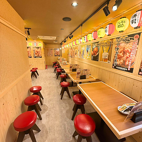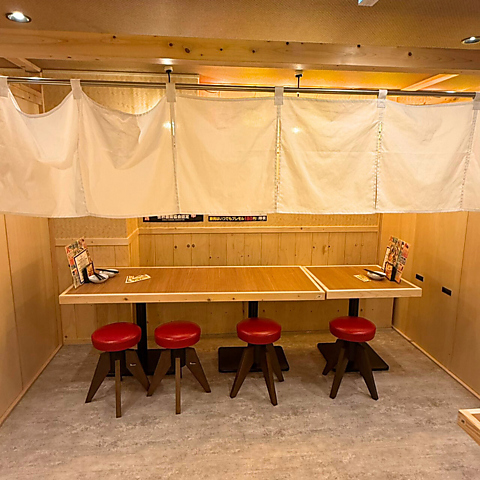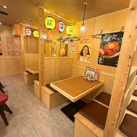 【2階/半個室風テーブル席】2階席には、両側を壁で仕切った半個室風のテーブル席をご用意しています。完全な個室ではありませんが、ほどよく区切られた空間で、周りを気にしすぎずお食事を楽しめるのがポイント!勝男らしいにぎやかな雰囲気はそのままに、仕事帰りの飲み会や少人数での集まりにも使いやすいお席です。