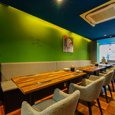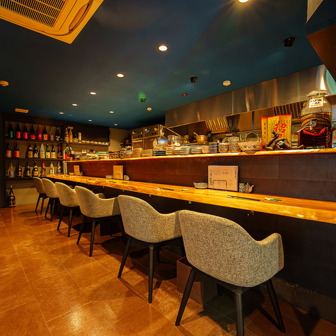 木の温もりを感じる和モダンな設えが印象的な上質空間。騒がしさを感じさせない落ち着いた店内では、料理やお酒の味わいをじっくり堪能できます。肩肘張らずに過ごせるため、大切な人との特別な時間にも最適です。