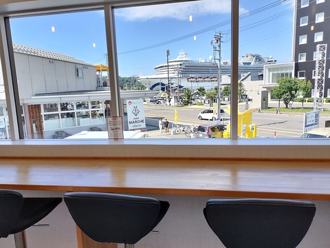 | カウンター | 11名様×1 | 2階カウンター席はすべてハイチェアタイプ。クルーズ船入港日には美しい船体を眺めながらゆっくりと過ごせます |