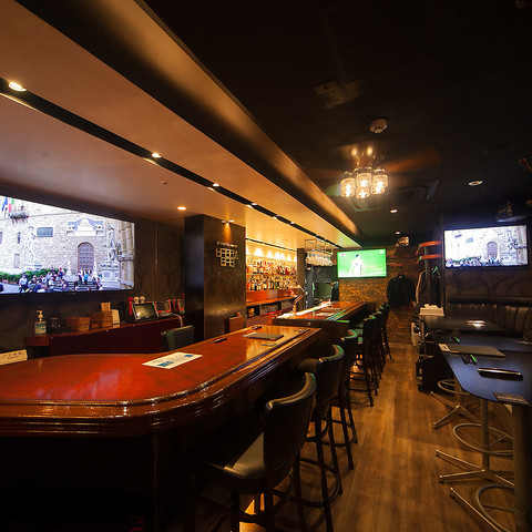 店内には大型モニターが3台設置されており、スポーツ観戦や各種パーティーの演出にも最適です。開放感あふれる空間は、圧迫感を感じさせずゆったりとお過ごしいただけます。お一人様でモニターを眺めながら一杯飲むもよし、仲間内で盛り上がるもよし。錦の喧騒を忘れさせてくれる、洗練された心地よい雰囲気です。