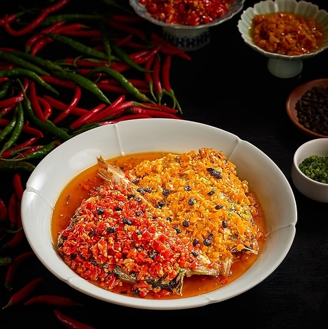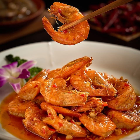 中国八大料理の一つ「湖南料理」の神髄を味わえる一皿です。驚くほど大ぶりでプリプリの海老を、自家製の発酵唐辛子や厳選スパイスと共に高温で一気に炒め上げました。口の中で弾ける海老の食感と、後を引く奥深い辛さが食欲をそそります。本場の熱気を感じさせる、華やかで力強い味わいをぜひお楽しみください。