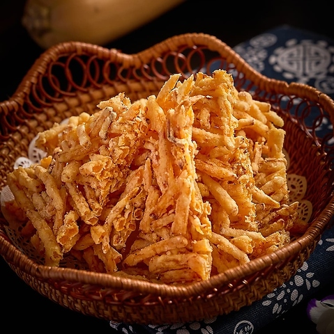 ひょうたん型が特徴のバターナッツかぼちゃを贅沢に使用☆高温で一気に揚げ焼きにすることで、外側は香ばしくカリッと、中はバターのように濃厚でクリーミーな食感に仕上げました。噛むたびにナッツのような香ばしさと、凝縮された濃厚な甘みが口の中でとろけます◎お酒のつまみにも、お子様にも大人気の自信作です。