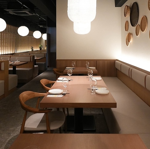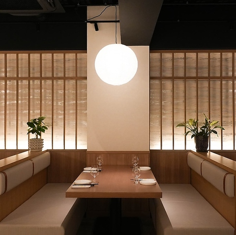 壁側に配置された、4名様から6名様でご利用いただける使い勝手抜群のボックス席です。お隣との間隔も程よく、ゆったりとしたソファに座ってリラックスしながらお食事が楽しめます友人やご家族と会話を楽しみながら、心満たされるひとときをお過ごしください。
