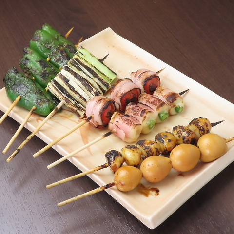 ピーマンを使った野菜串は、隠れ人気メニュー◎とてもジューシーで食べ応えがありながらもヘルシーな一品です。他にベーコントマトやアスパラチーズベーコンなど、選りすぐりの具材を使用し、豊富なバリエーションをご用意◎特に女性のお客様に人気で、見た目にも美しい彩りが食事を華やかに演出します。ぜひ、野菜の美味しさをご堪能ください。