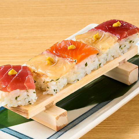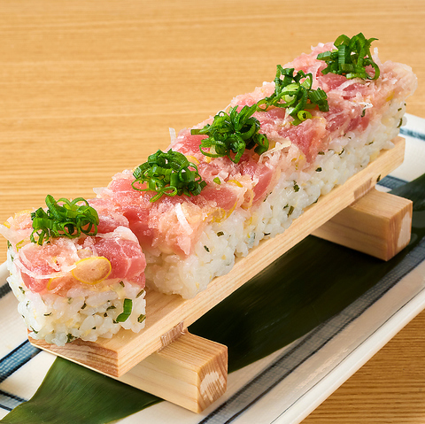 鮪赤身・ブリ・サーモン・鯛・ねぎトロ/一杯で味わう海鮮のメリーゴーランド!他にも丼ぶり多数ございます。スタッフにお尋ねください
