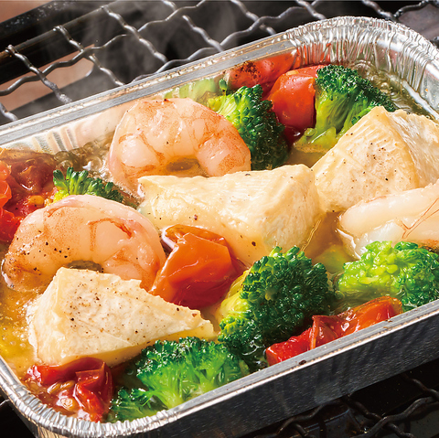 名物浜焼き(新鮮な魚介を自分で焼いて楽しむ。溢れ出る素材の旨みを熱々のうちにどうぞ!)