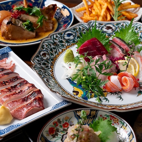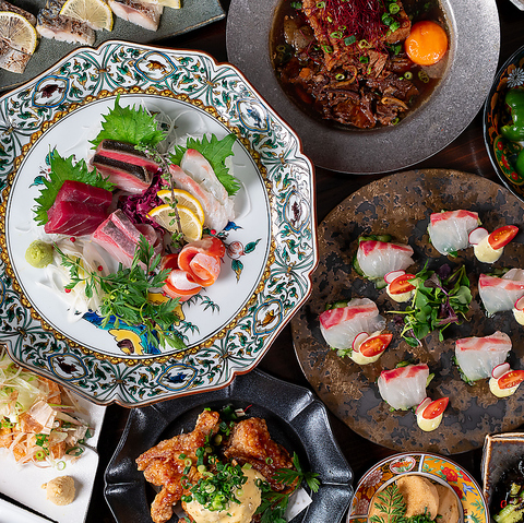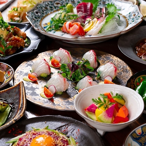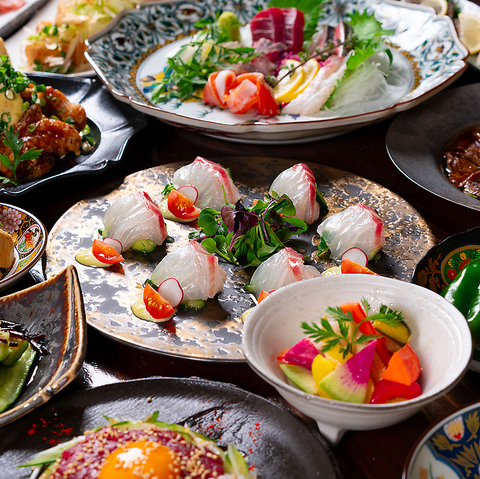 浜焼き・お刺身・寿司にもこだわりをもってご提供!厳選仕入れの鮮魚や海鮮を、店内で素早く捌いて仕込みます。「博多仕込み胡麻カンパチ」や「鮮魚のカルパッチョ」は焼酎やクラフトビールとの相性もバツグン◎女子会には、見た目にも華やかな「海の彩り~こぼれ軍艦 3種盛り」が人気です♪