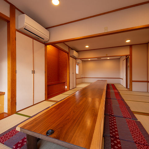 宴会向けの広々としたお座敷席やテーブル席を完備し、大人数の利用でもゆったりと過ごせる空間づくりにこだわっています◎通路や席間隔にも余裕があり、居心地の良さを大切にした配置。歓送迎会・仲間との打ち上げなど、さまざまな宴会シーンに対応可能な柔軟さも魅力!多彩なシーンでお楽しみください!