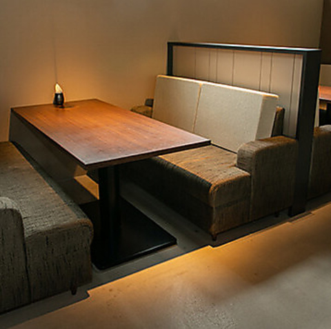 住宅街にひっそりと佇む当店は、日常を忘れておしゃれな空間を楽しめるイタリアンレストラン。店内には4名掛け卓×8卓のソファー席を完備。広々としたシートに加え、隣の席と壁や敷居で仕切られているため、周囲の視線を気にせずプライベートな時間を過ごせます。女子会やママ会、お子様連れの方にも最適です。