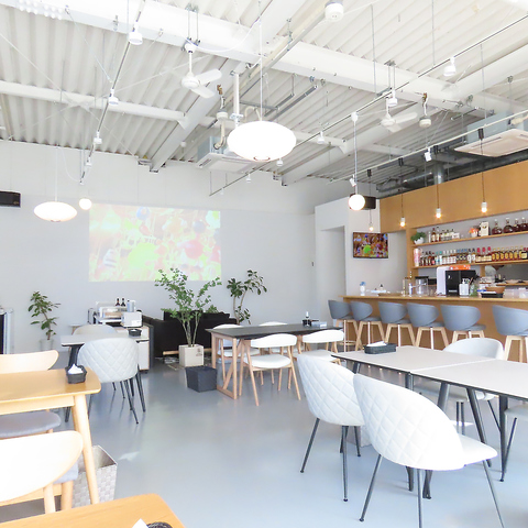白を基調とした清潔感のある店内でランチやカフェ利用をお楽しみいただけます。デートや女子会、ママ会などにおすすめとなっています。