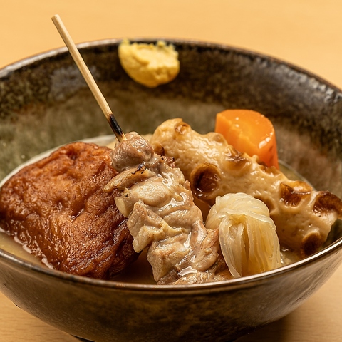 鶏料理専門店だからこそ実現できる、濃厚ながらも上品な後味の鶏出汁が自慢です♪お出汁が染み込んだ大根や練り物など、一品一品丁寧に仕上げています。串焼きの合間や、お酒の肴としても相性ぴったりな逸品。お出汁の香りに包まれ、日常の喧騒を忘れてホッとするひとときを。最後の一滴まで飲み干したくなる美味しさです◎