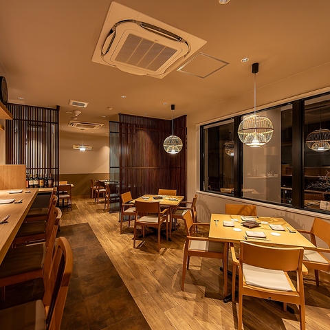 ゆったり配置されたテーブル席は、落ち着いた大人の隠れ家のような雰囲気。温かな照明が包み込む空間で、友人との会食や接待、家族での団らんなど、多彩なシーンでご利用いただけます◎窓からは外の景色も楽しめ、開放感あるひとときをお過ごしいただけます♪美食を囲みながら、日常の喧騒を忘れて心ほどける時間をどうぞ。