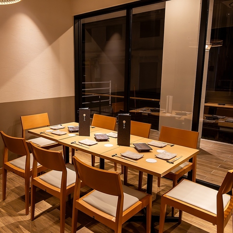 ゆったり配置されたテーブル席は、落ち着いた大人の隠れ家のような雰囲気。温かな照明が包み込む空間で、友人との会食や接待、家族での団らんなど、多彩なシーンでご利用いただけます◎窓からは外の景色も楽しめ、開放感あるひとときをお過ごしいただけます♪美食を囲みながら、日常の喧騒を忘れて心ほどける時間をどうぞ。