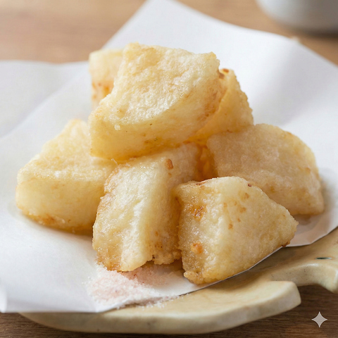 じっくり味を染み込ませた大根を、外はカリッと中はジューシーに唐揚げに。噛んだ瞬間に広がる出汁の旨みと、ホクホク食感がクセになる一品です。お酒のお供にも、箸休めにもおすすめ◎