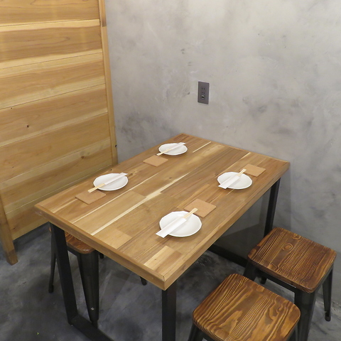 木の質感を活かしたスタイリッシュなテーブル席は、お仲間との宴会やパーティーに最適です。落ち着いた雰囲気の店内で、ゆったりとした時間をお過ごしいただけます。温かみのある空間で、自慢の鉄板料理を囲みながら賑やかなひと時をお楽しみください。