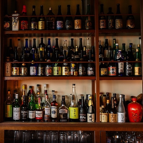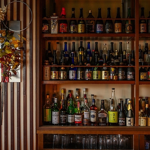 圧巻の種類が並ぶお酒の棚は、まさに“見て楽しむ”大人のための特別な景観。銘酒がずらりと並ぶ光景は、ラベルの色彩やボトルの形までもが美しく、空間そのものを華やかに彩る。選ぶ楽しさと眺める喜びが共存し、一歩踏み入れた瞬間から心が高揚する、視覚でも味覚でも満たされる上質なひとときを演出します。