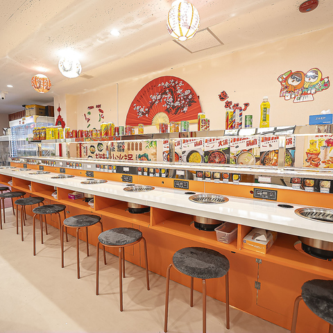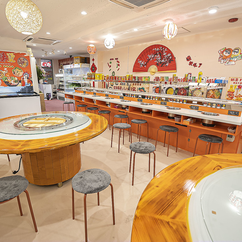 店内は明るく清潔感があり、初めてでも入りやすい雰囲気。回転レーンを中心にしたレイアウトで、具材を選ぶ楽しさがそのまま体験できます。ひとりでも利用しやすく、ランチにもディナーにも使える便利さが魅力の空間です。